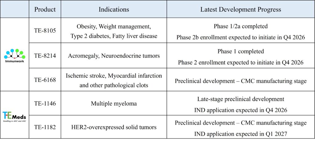 Note 2: TE-8105, TE-6168, and TE-1146 were designated as priority drug development cases by the Center for Drug Evaluation (CDE) in 2019, 2026, and 2025, respectively.