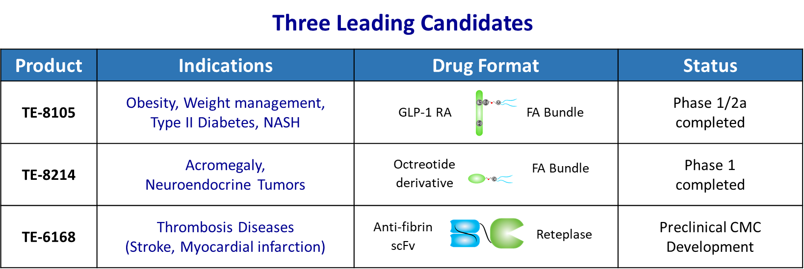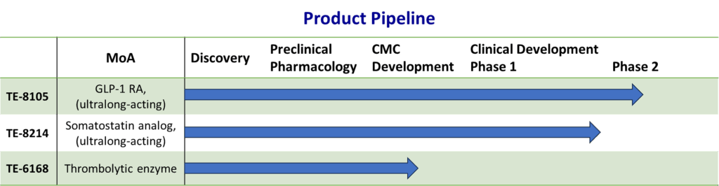 In addition, the anti-thrombotic candidate TE-6168, designed using the T-E drug development platform, is in the preclinical CMC manufacturing stage.