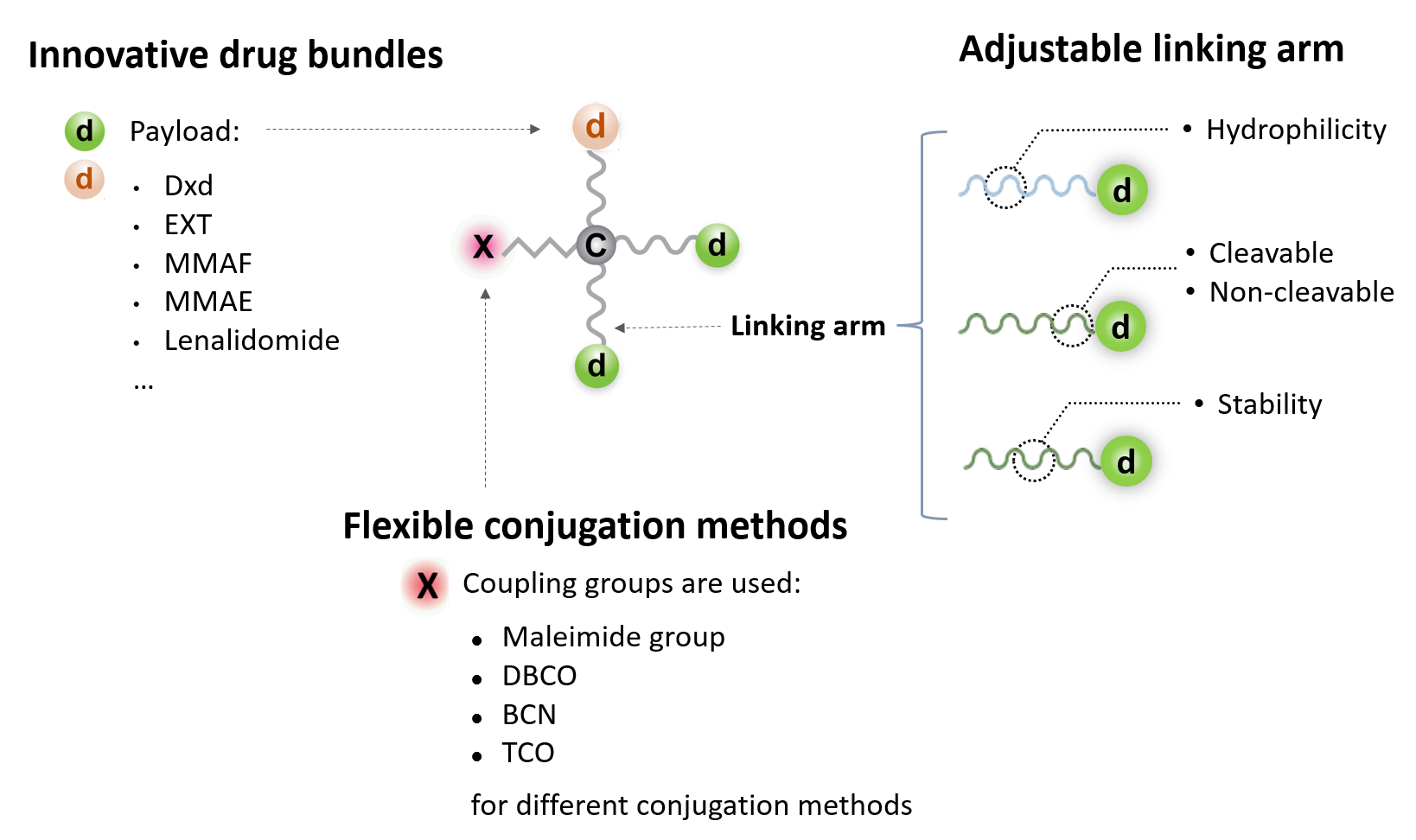 - Dual-Payload Capability: Successfully overcomes the technical challenge of dual payloads, enabling ADC drugs to carry two different drugs and providing new opportunities for the treatment of drug-resistant and heterogeneous tumors